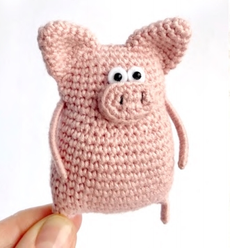 – 13 страниц подробного текстового описания создания прочного проволочного каркаса, а также вязания крючком и оформления поросёнка;